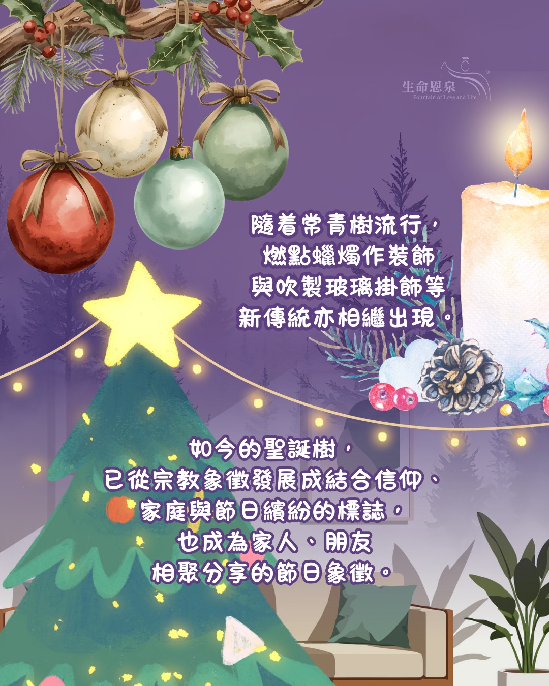 🌲 如今的聖誕樹,已從宗教象徵發展成結合信仰、家庭與節日繽紛的標誌,也成為家人、朋友相聚分享的節日象徵。